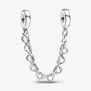 Cadena De Seguridad Plata Con Corazones De Zirconias
