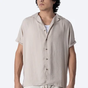 Camisa café claro con estampado de palmeras