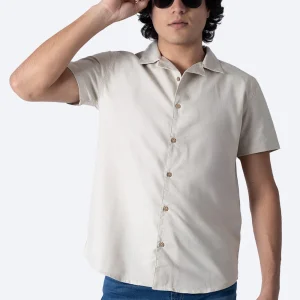 Camisa manga corta beige claro