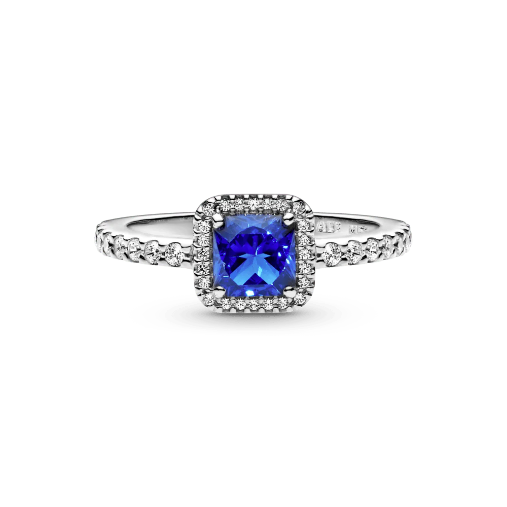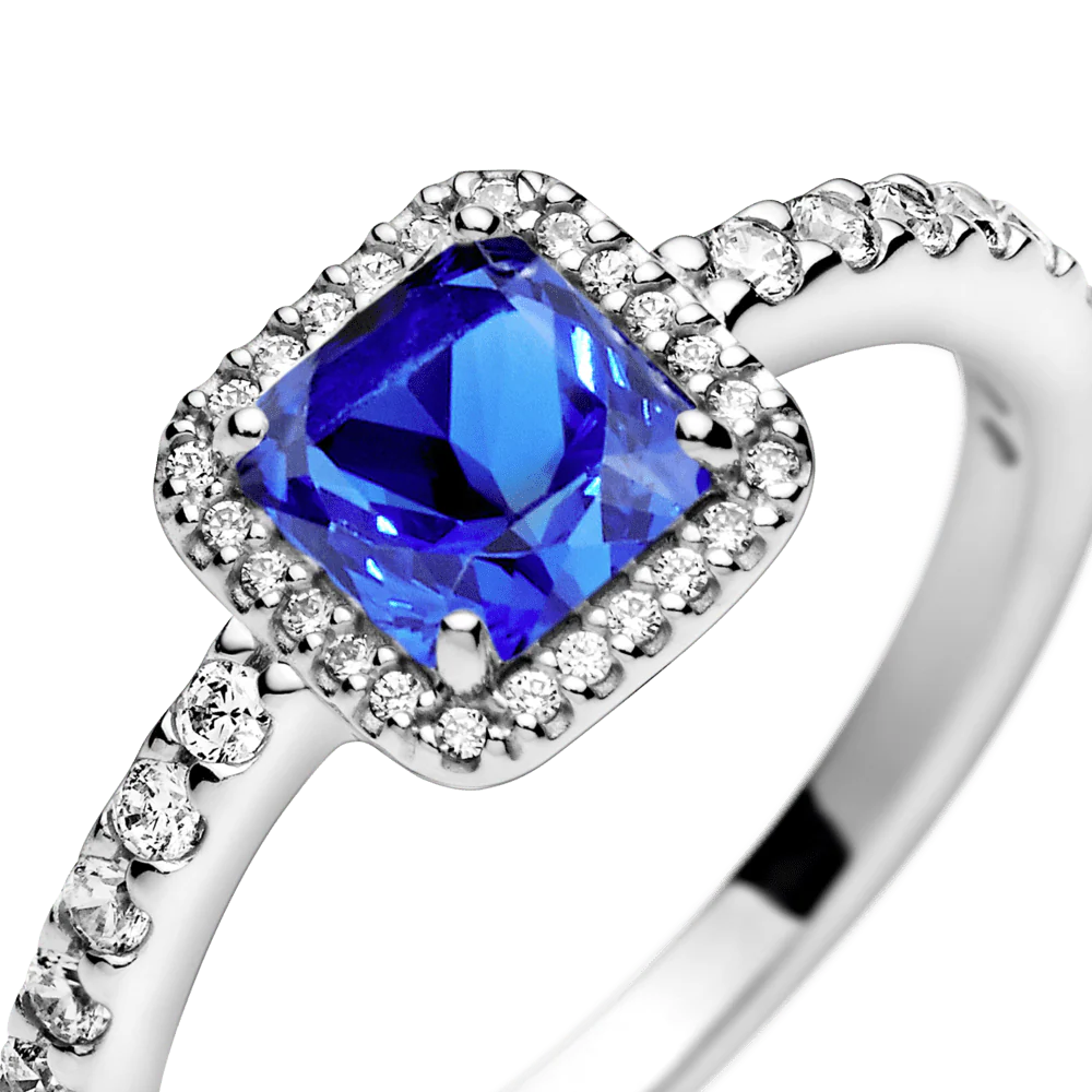 Anillo en plata esterlina con 1 cristal genuino azul con corte de Danubio, 24 zirconitas cúbicas transparentes y 34 zirconitas cúbicas en tamaño 54