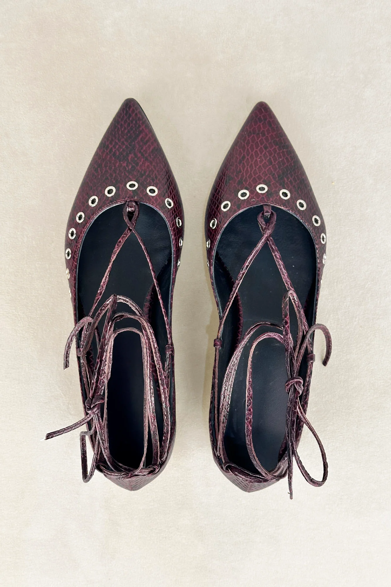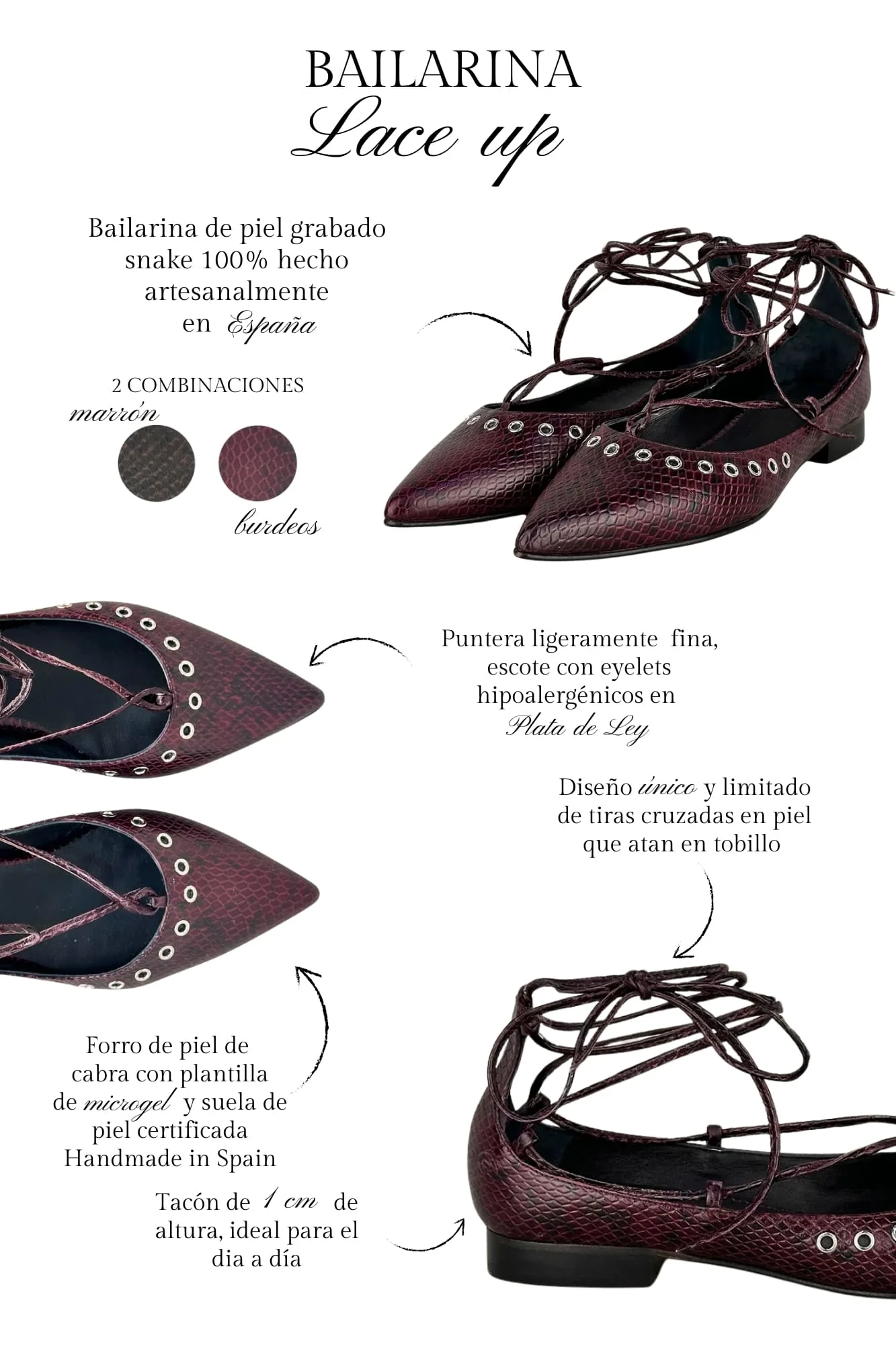 Sé el primero en valorar “BAILARINA LACE UP SNAKE BURDEOS 2CM”