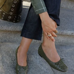 Bailarina de estilo merceditas en piel trenzada artesanalmente marrón chocolate, el equilibrio perfecto entre tendencia y atemporalidad. Puntera ligeramente fina en contraste de color tostado. Tira de cierre en empeine con cierre de hebilla regulable hipoalergenica. Presenta piso de 2 cm de altura con plantilla de microgel para un mayor confort. Forro y plantilla de piel mestizo de cabra a tono y planta con certificado »handmade in Spain» con logo grabado a fuego. Incluye una bolsa de algodón. Diseñado y fabricado artesanalmente en España.