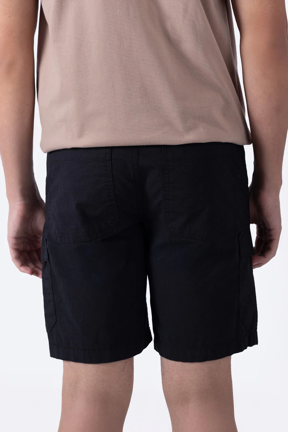 Esta bermuda negra con jareta combina comodidad y funcionalidad gracias a su confección en 97% algodón y 3% elastano, que ofrece un ajuste flexible y duradero. Sus bolsillos tipo cargo aportan practicidad para llevar objetos esenciales, ideal para un estilo casual y activo. Perfecta para quienes buscan una prenda versátil y resistente.
