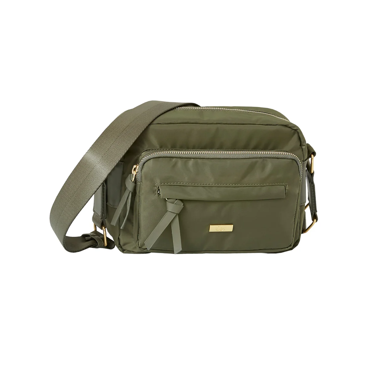 Bolso mara Caterpillar color verde. Bolsillo principal y frontal con cierre de cremallera, bolsillo interior con forro, cuenta con correas de hombro ajustables, bolsillo discreto en el panel trasero. Dimensiones (cm): 24 x 17,5 x 13,5, volumen: 3,8 litros, peso: 0,368 kilogramos, material: nylon 290T.