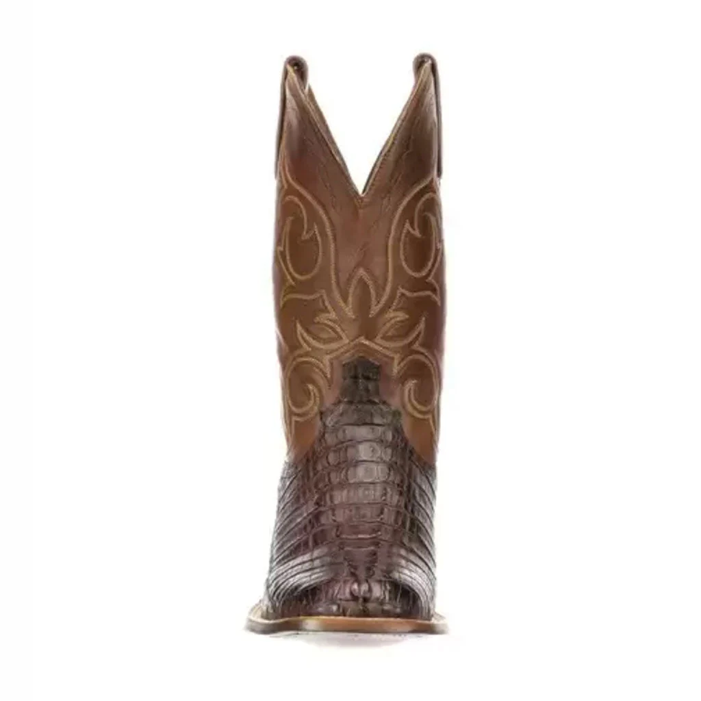 - Haan es una bota para el hombre de caballo tradicional con un lustre exótico. Construida de cola Horn Back Caiman, además el bordado a mano que lleva el tubo adorna el empeine.