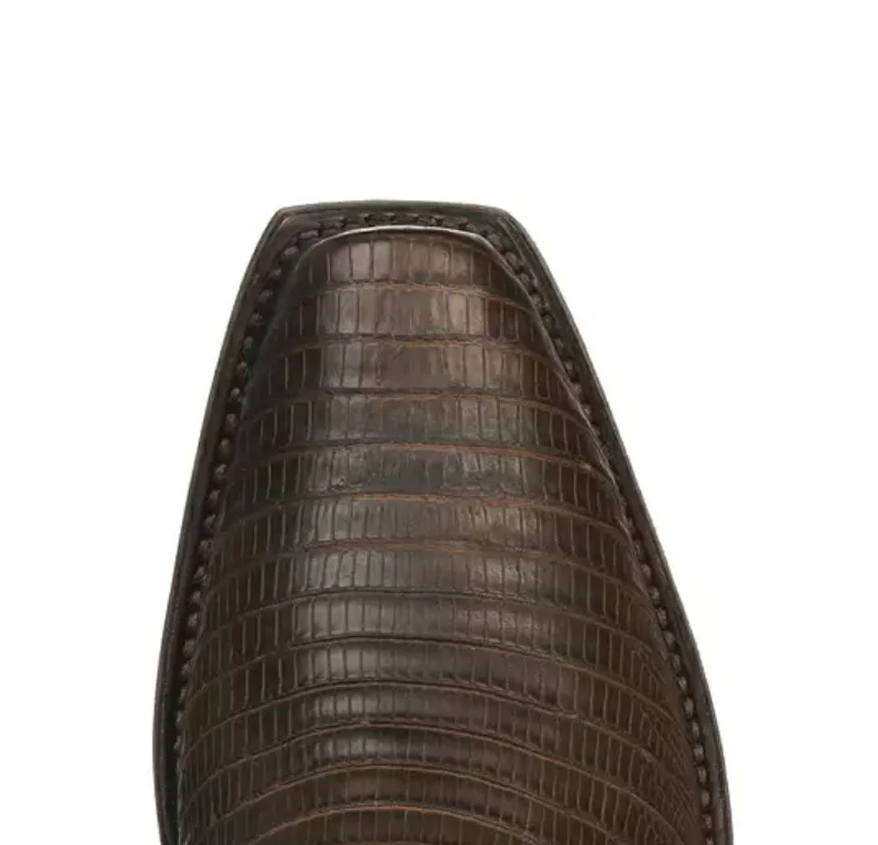 El Lagarto es un exótico codiciado. Lucchese fábrica botas con dos tipos de lagartos: ringtail y teju. Ringtail, es una rareza en el mundo de las botas. De hecho;; Lucchese es una de las pocas empresas de botas que trabaja con él. Usando solamente pieles suaves de la mayor calidad y pieles exóticas, Lucchese construye su bota diseñada para abrazar el pie de la persona gracias a las suelas exclusivas que usan. Para un toque final perfecto, nuestros expertos fabricantes de botas usan una variedad de técnicas para los terminados que incluyen dar un terminado de usado, detallar las orillas y pintado a mano. Teju, es una piel de lagarto de aspecto más tradicional, con pequeños azulejos y rayas. A primera vista podría confundirse con un mini caimán.
