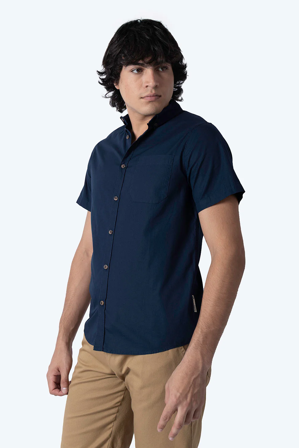 Esta camisa de manga corta en tono azul marino, confeccionada en 100% algodón, ofrece una sensación ligera y fresca ideal para climas cálidos. Su diseño aporta un toque vibrante y cómodo, cuenta con una bolsa en enfrente lado izquierdo, perfecto para quienes buscan combinar comodidad y estilo en sus atuendos casuales.