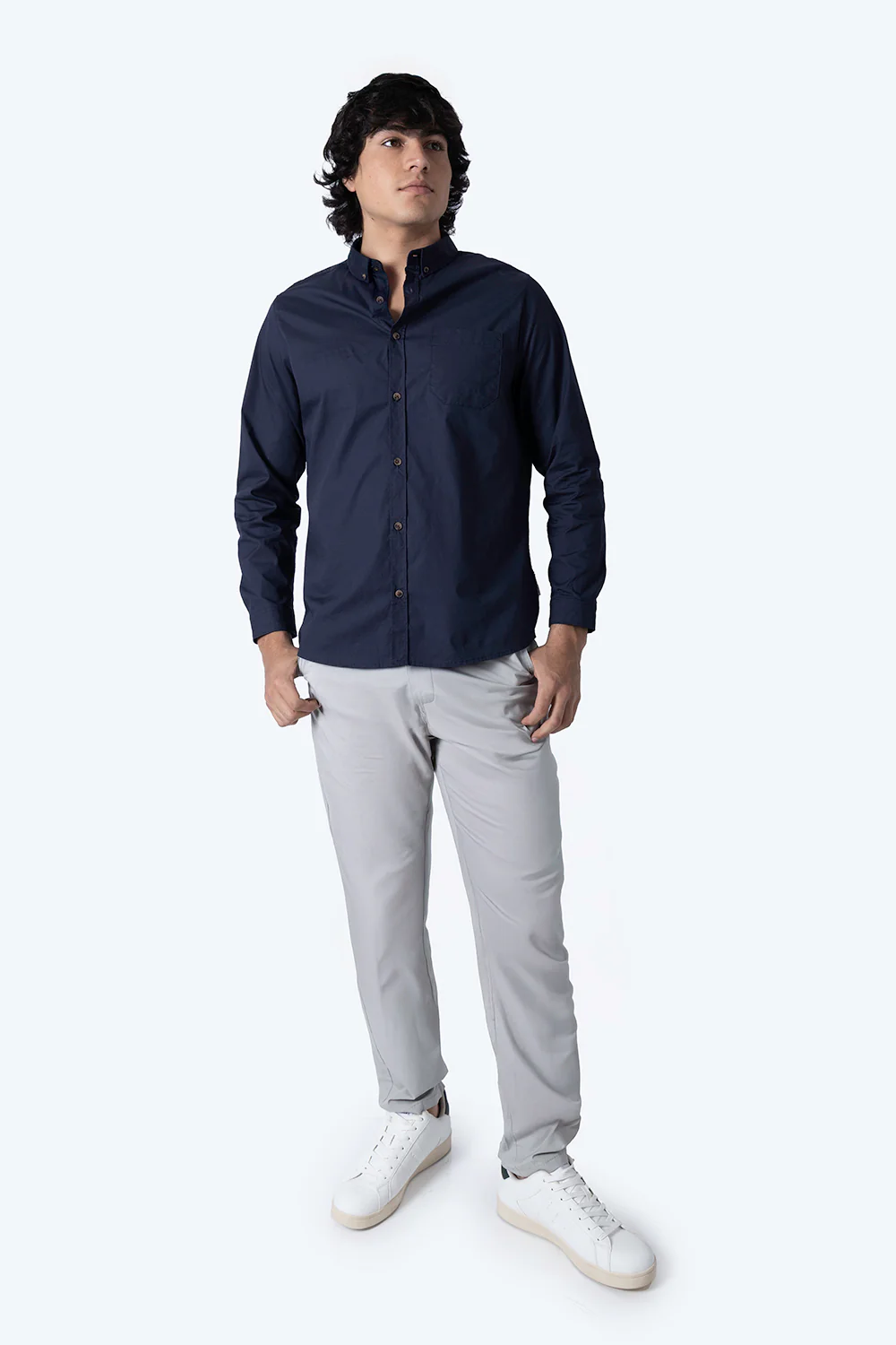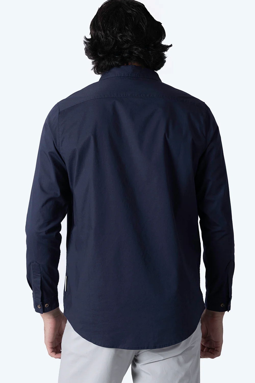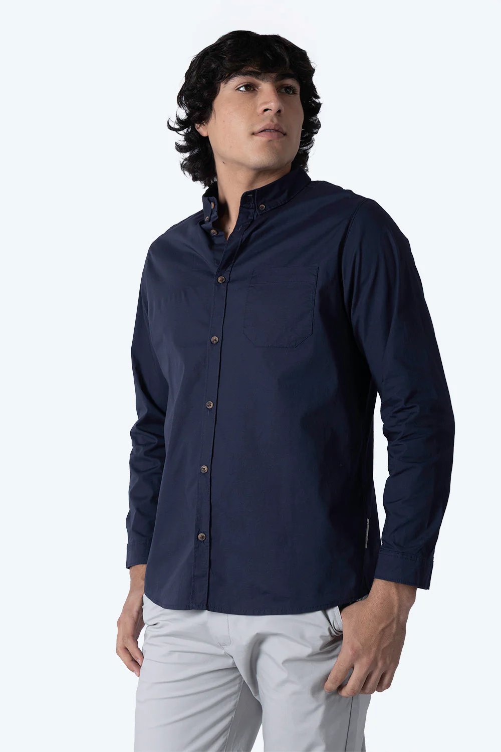 Esta camisa de manga larga en tono azul marino combina comodidad y estilo gracias a su composición de 97% algodón y 3% elastano, que proporciona suavidad y ligera elasticidad para un ajuste cómodo. Cuenta con un práctico bolsillo frontal, ideal para llevar pequeños objetos con facilidad. Perfecta para ocasiones casuales o formales, ofrece versatilidad y durabilidad en tu guardarropa.