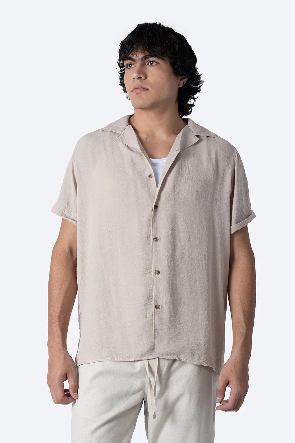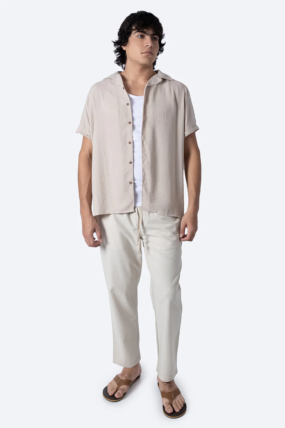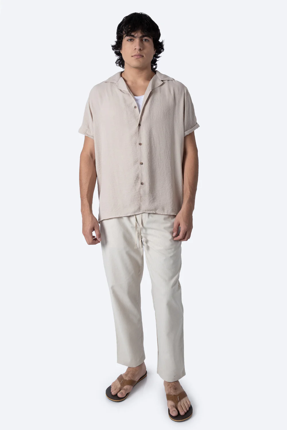 Esta camisa café de manga corta está elaborada con una mezcla equilibrada de 50% algodón y 50% poliéster, lo que proporciona una tela fresca y duradera. Su composición garantiza comodidad, buena transpirabilidad y fácil cuidado, ideal para mantener un estilo impecable en climas cálidos sin sacrificar resistencia ni suavidad.