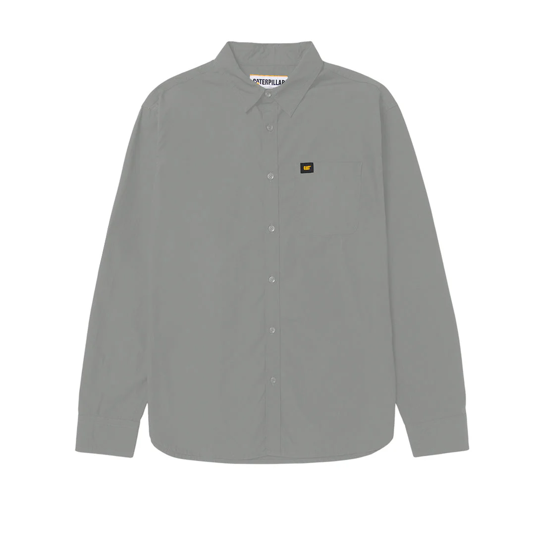 Camisa de manga larga con mangas enrollables y pestaña amarilla para mayor versatilidad, bolsillo en el pecho, botones con marca, dobladillo tipo shirttail y etiqueta Cat® en el pecho.