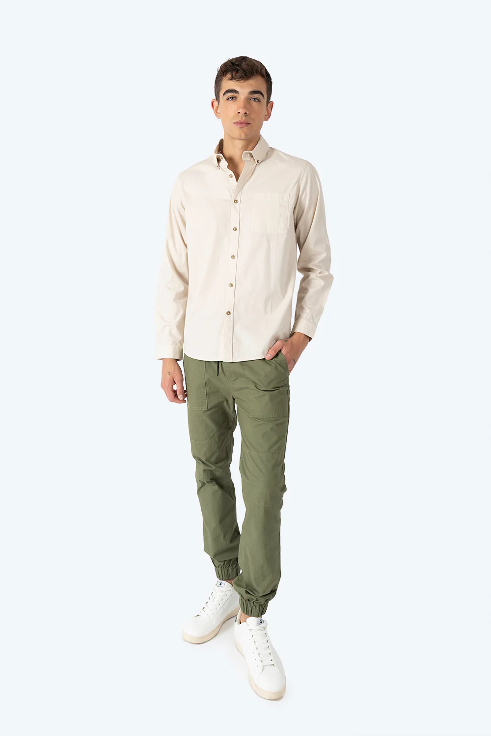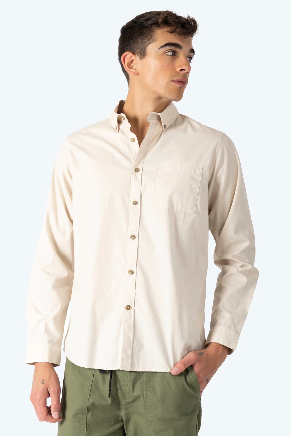 Esta camisa de manga larga en beige claro para hombre está confeccionada 100% en algodón, lo que garantiza comodidad y transpirabilidad durante todo el día. Su diseño clásico y atemporal la convierte en una prenda versátil para uso formal o casual, aportando un toque sofisticado y profesional a cualquier atuendo. Ideal para quienes buscan calidad y estilo en su guardarropa diario.