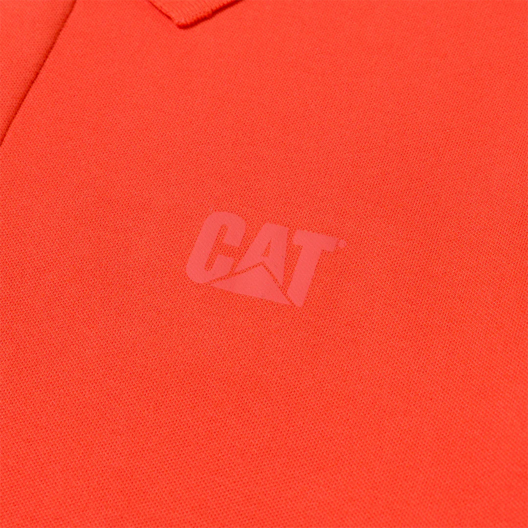 La camisa polo Cat® Logo Pique combina un diseño limpio con un toque de estilo workwear, con logo Cat® estampado en el pecho, cuello y puños de canalé plano, tapeta de botones oculta, bordado de triángulo amarillo en la manga y dobladillo dividido tipo droptail.
