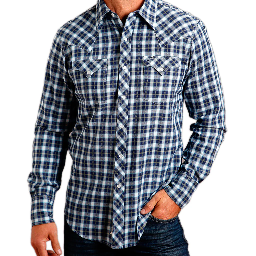 - Camisa Stetson color azul con estampados cuadrados