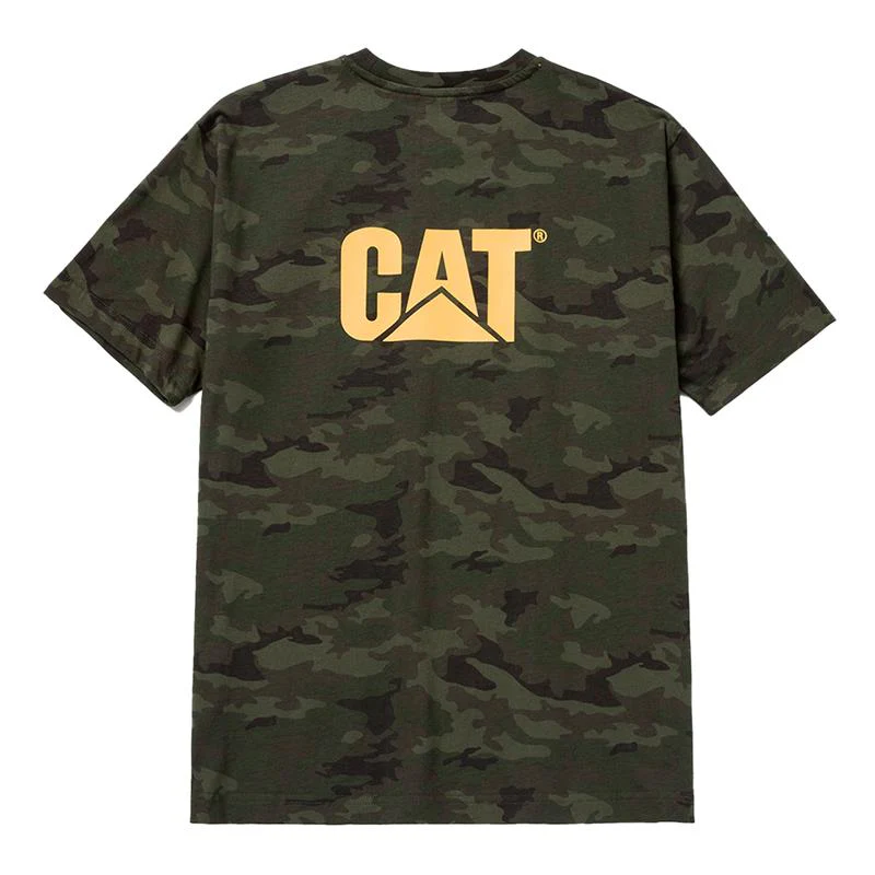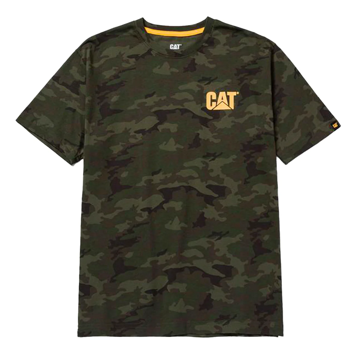 Camiseta de hombre liviana y fresca, 100% algodón de talle activo (más amplio a lo largo del costado). cuello tipo parrilla con retencion de forma. Logo cat al pecho izquierdo y en la parte trasera.