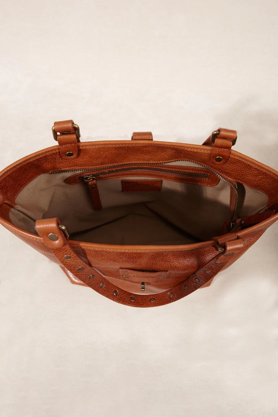 Bolso capazo realizado en piel vacuno 100% en color cuero.