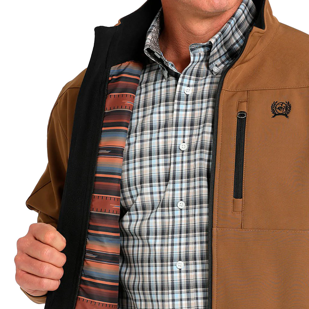 Desde paseos por senderos hasta campamentos, disfruta de tus actividades al aire libre favoritas con una chaqueta marrón con refuerzo de poliéster y elastano como esta confeccionada por CINCH. Nuestro abrigo versátil tiene forro estampado, puños con velcro, bolsillos exteriores, bordado de logotipo en 3D y acabado resistente al agua duradero