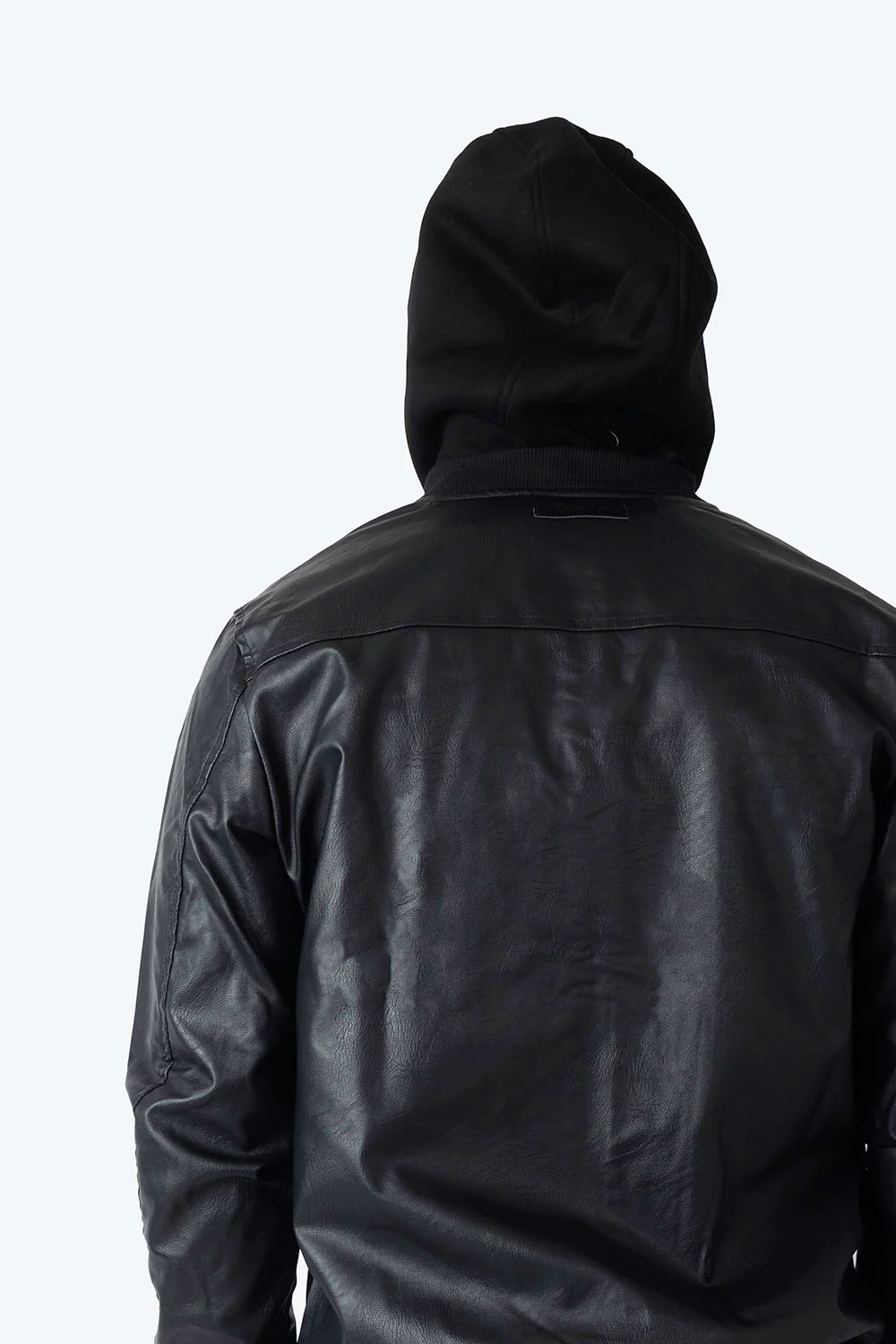 Esta chamarra negra de vinipiel para hombre combina estilo y funcionalidad con un cierre frontal resistente y un gorro desmontable que ofrece versatilidad según la ocasión. Su diseño robusto y acabado elegante la convierten en una opción ideal para protegerse del frío manteniendo una apariencia moderna y sofisticada.