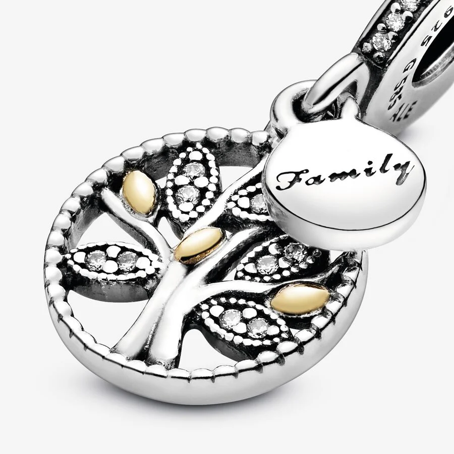 Charm colgante Árbol Familiar en plata de primera ley, oro de segunda ley y adornado con circonitas cúbicas transparente