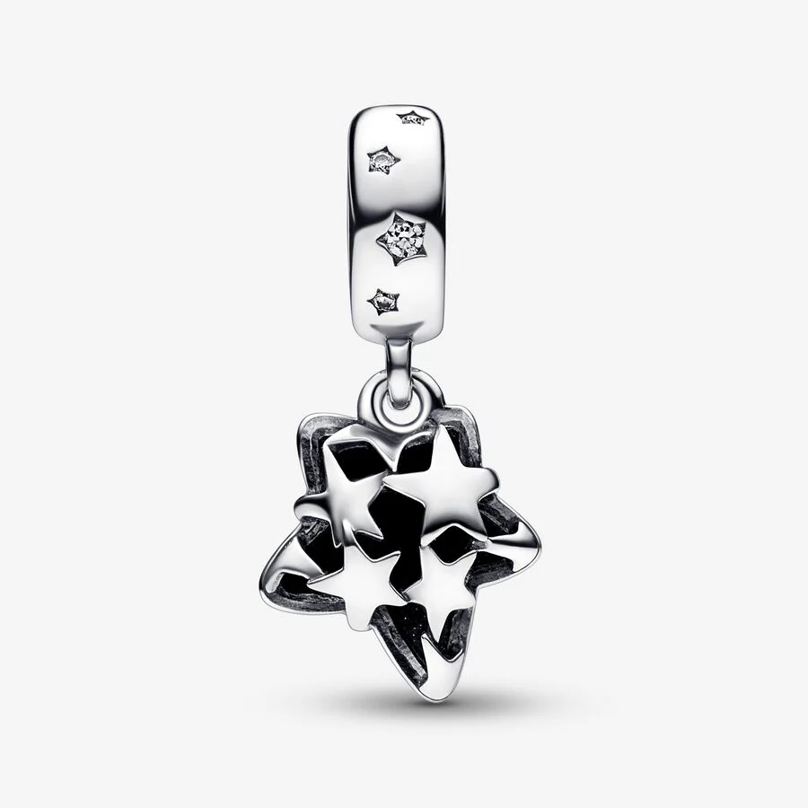 Captura las maravillas de una noche clara y estrellada con el Charm colgante de Murano Estrella de Galaxia Celestial. Este charm colgante de plata de ley tiene una gema única en forma de estrella asimétrica creada con cristal de Murano, con un brillante efecto estelar azul intenso. Las estrellas en filigrana de plata de ley aportan una capa adicional de adornos al reverso del charm, y el gancho está decorado con circonitas cúbicas transparentes, engastadas dentro de formas de estrellas impresas. Ponlo en tu pulsera o portacharms para añadir un toque elegante a tu estilo.