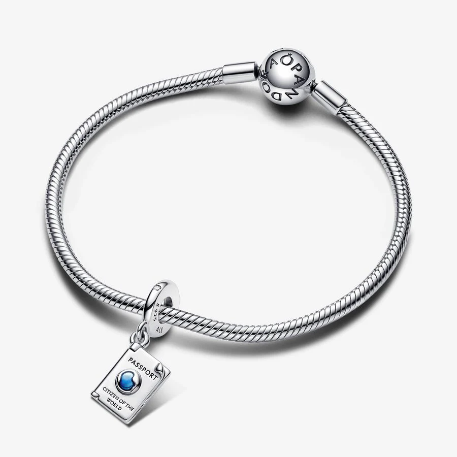 Conoce tu pasaporte para soñar en tierra, el Charm Colgante Pasaporte Que Se Abre. Acabado a mano en plata de primera ley, este charm se presenta con las inscripciones «PASSPORT» «CITIZEN OF THE WORLD» y «Dream Land» (Pasaporte, ciudadano del mundo y Tierra soñada) en el exterior y un globo esmaltado en color azul en la parte delantera. Abre el pasaporte para descubrir los sellos de fronteras grabados y los mensajes «The world is yours» y «to explore» (El mundo es tuyo, para que lo explores). Inclúyelo en tu estilo como recordatorio de todos los lugares en los que has estado y los lugares que sueñas con visitar.