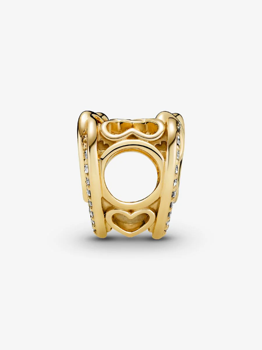 Este Charm Corazones Entrelazados Brillantes es el regalo perfecto para alguien con un corazón de oro. Acabado a mano, este diseño incluye corazones entrelazados, con un recubrimiento electrolítico en oro de segunda ley de 14k, adornado con circonitas cúbicas transparentes.Los corazones entrelazados también se muestran en los laterales. Inspirado en el amor eterno, regala este charm alguien especial.