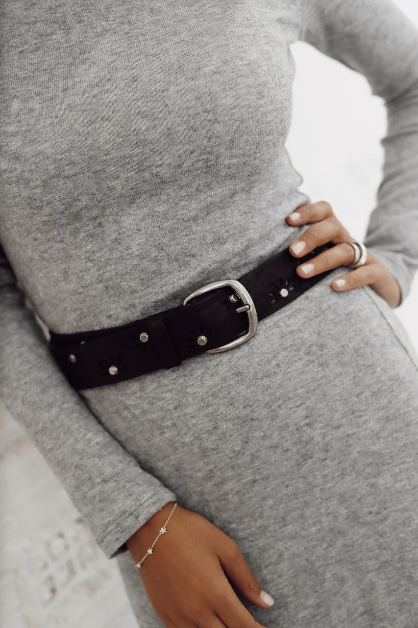 - Tachas plata vieja a lo largo de todo el cinturón