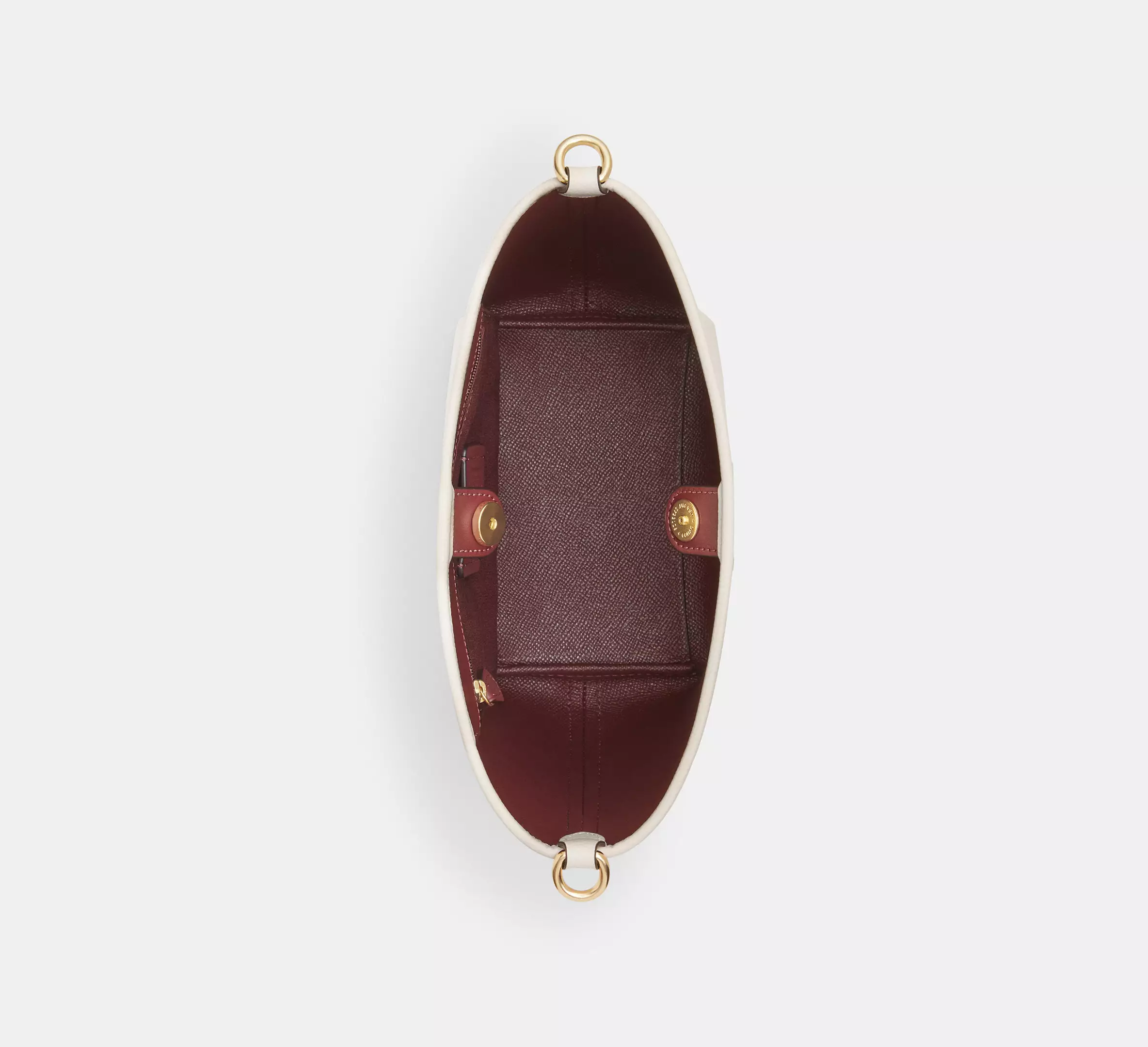 Luce sofisticada y fresca con la Bucket City de Coach en un hermoso tono blanco hueso. Su diseño limpio, herrajes dorados y forma estructurada la convierten en una pieza elegante, ideal para combinar con cualquier look claro o tonos tierra. Perfecta para primavera, verano o para quienes aman los tonos neutros.