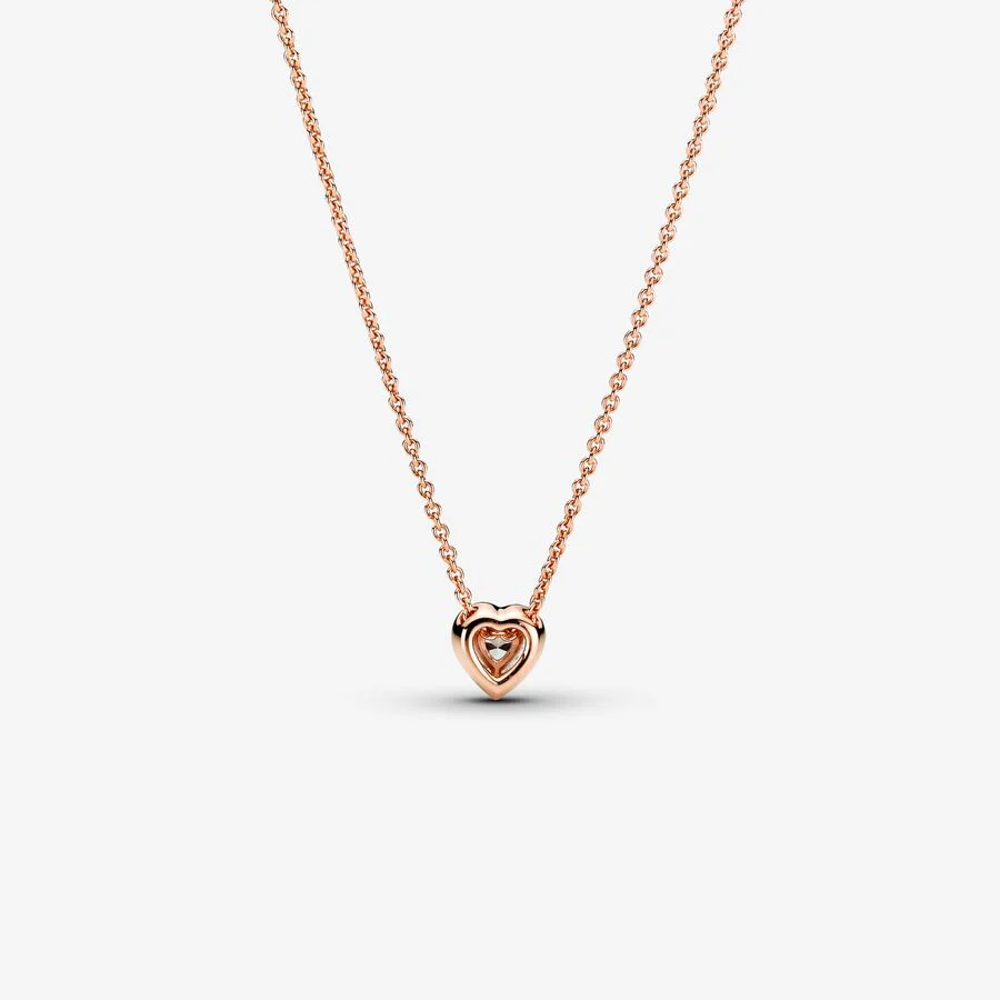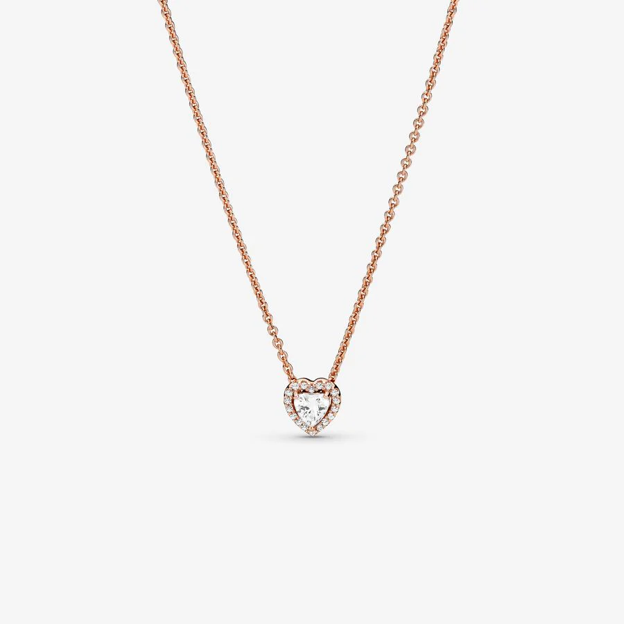 Declárate con el Collar Brillante Corazón. Acabado a mano en Pandora Rose (aleación única de metales con un recubrimiento en oro de segunda de ley de 14K), este collar se inspira en elementos del diseño clásico de la colección Pandora Timeless. Esta joya se presenta con una gema central más elevada en forma de corazón rodeada por un halo de circonitas cúbicas transparentes y una etiqueta con el monograma de la corona de la O de Pandora en el cierre. Ajusta la longitud del collar para adaptarlo a tu estilo y combínalo con otras joyas con forma de corazón para crear un look cargado de amor.