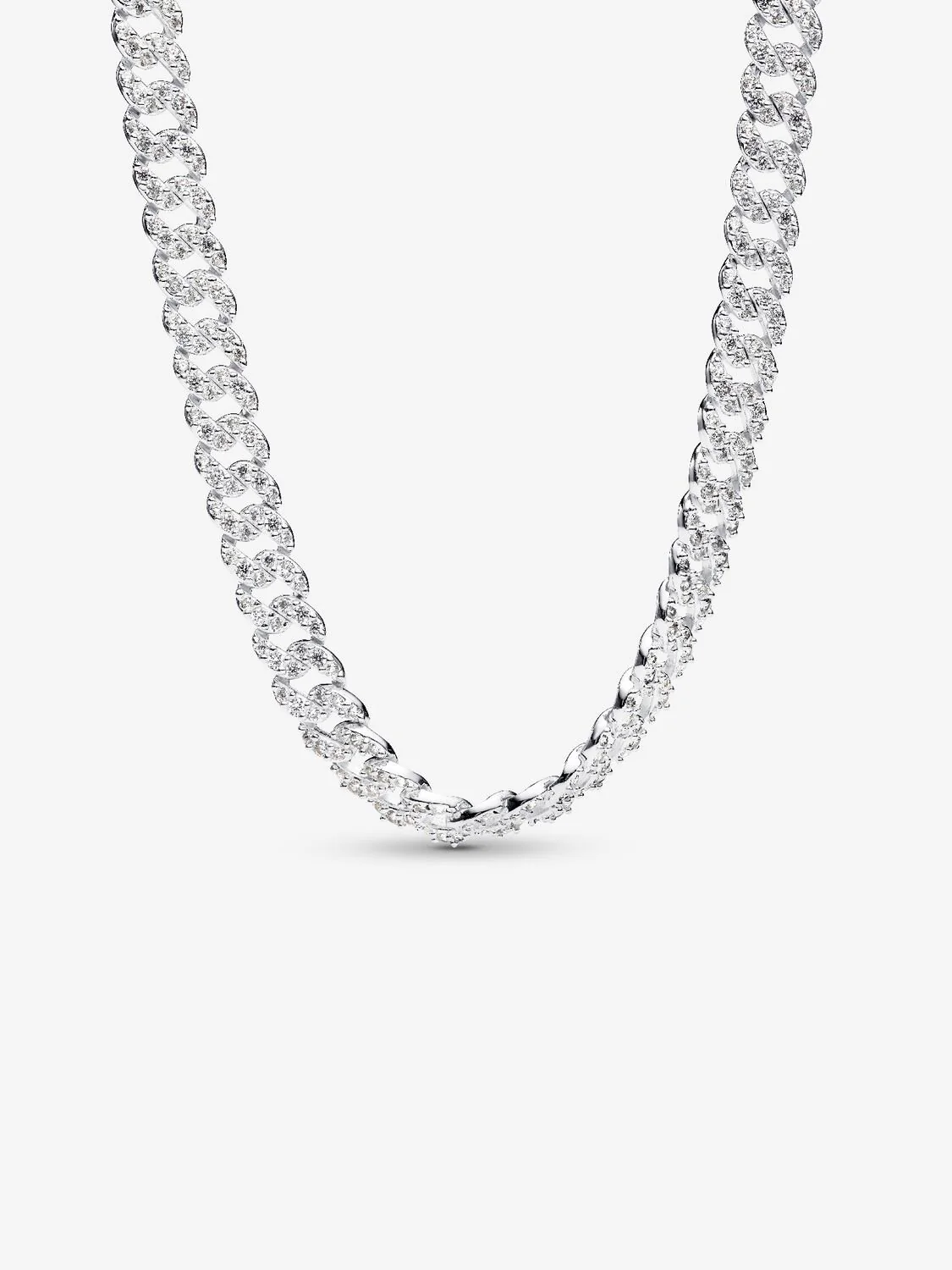 El Collar de Cadena Cubana de Pavé es verdaderamente llamativo. Creado en plata de primera ley, se presenta con una cadena cubana de 45, 50 y 60 cm embellecida con 690 circonitas cúbicas transparentes con talla brillante redonda y engastes a nivel para maximizar los brillos desde cualquier ángulo. Perfecto para combinar, este collar realza sin esfuerzo cualquier outfit, ya sea combinado con una sencilla camiseta o un vestido negro corto. La parte trasera pulida hace que sea cómodo de llevar, así que lo único que tendrás que hacer es prepararte para recibir cumplidos.