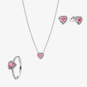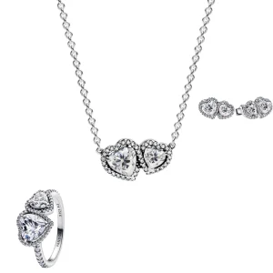 Conjunto Doble Corazon Azul Celeste (Anillo + Collar + Pendientes)
