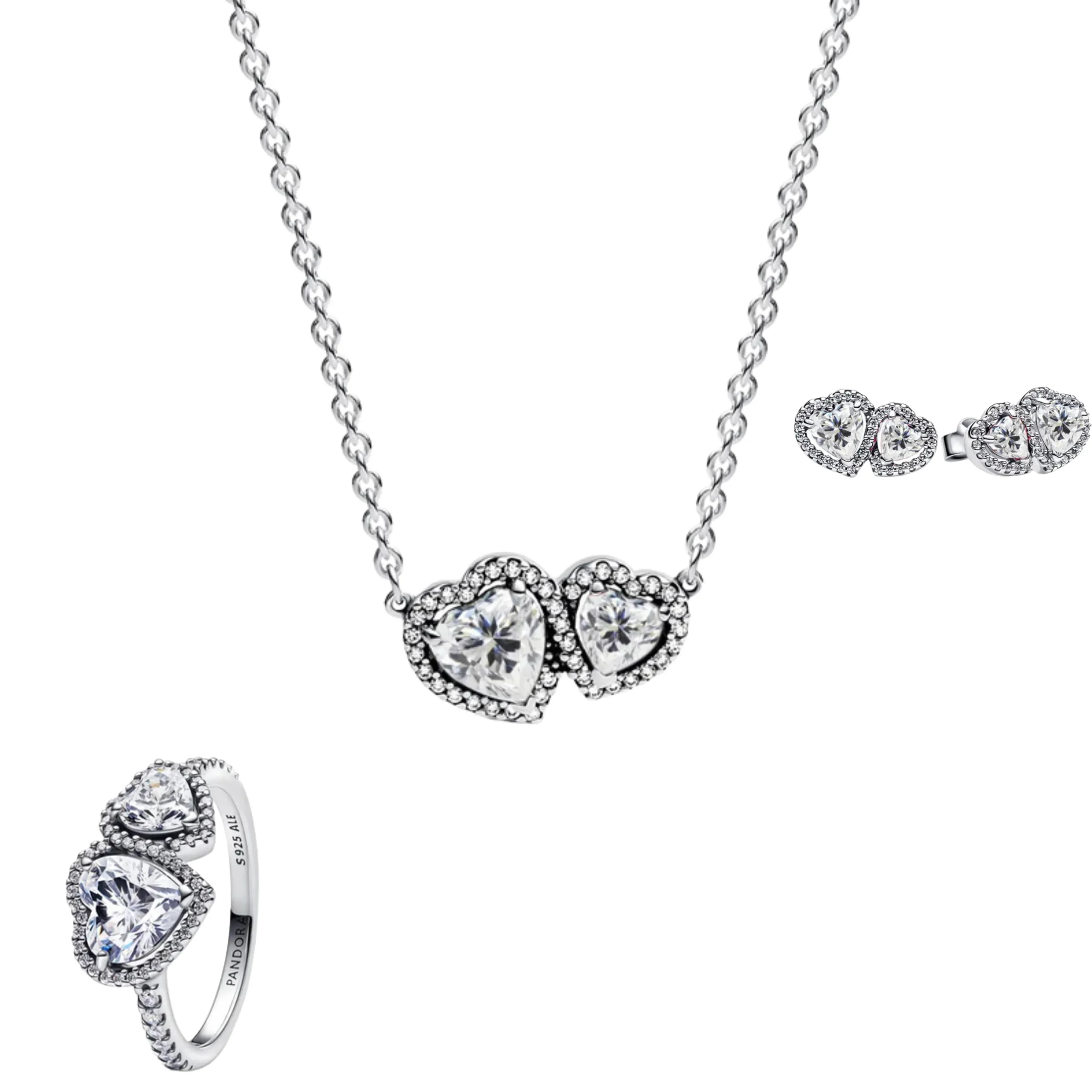 Conjunto Doble Corazon Blanco (Anillo + Collar + Pendientes)