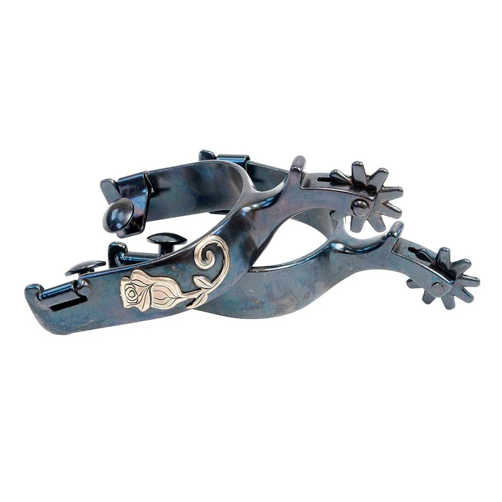 Diseñada por expertos para los entusiastas vaqueros, la espuela Cowboy Tack Big Rose presenta un acabado pulido en gris intenso y características únicas como una copa grande y un ribete de rosa grande. Con un ancho de banda de 2,5 cm y una longitud de caña de 4,5 cm con protector de chaparreras, también incluye una espuela de 3,2 cm y 9 puntas para mayor precisión.