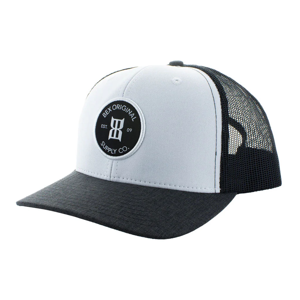 - Pequeña etiqueta tejida con texto BEX junto a la parte posterior de plástico.