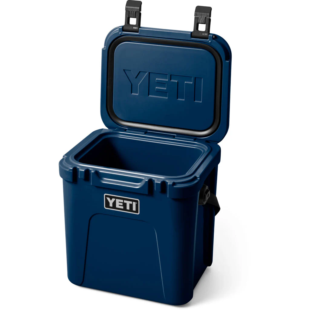 El Roadie 24 Hard Cooler es una nueva versión de un favorito probado de YETI. Es un 10% más ligero, tiene un 20% más e incluso tiene un rendimiento térmico un 30% mejor que su legendario predecesor. Además, lo construimos lo suficientemente alto como para acomodar botellas críticas de vino, pero lo suficientemente delgado como para apretarlo detrás del asiento del conductor o del pasajero de un automóvil. Ahora eso es lo que llamamos un compañero de viaje. Y bueno, este tipo es compatible con nuestro kit de amarre, lo que significa que también puede transportar este refrigerador en su bote, camioneta o remolque, no hay problema