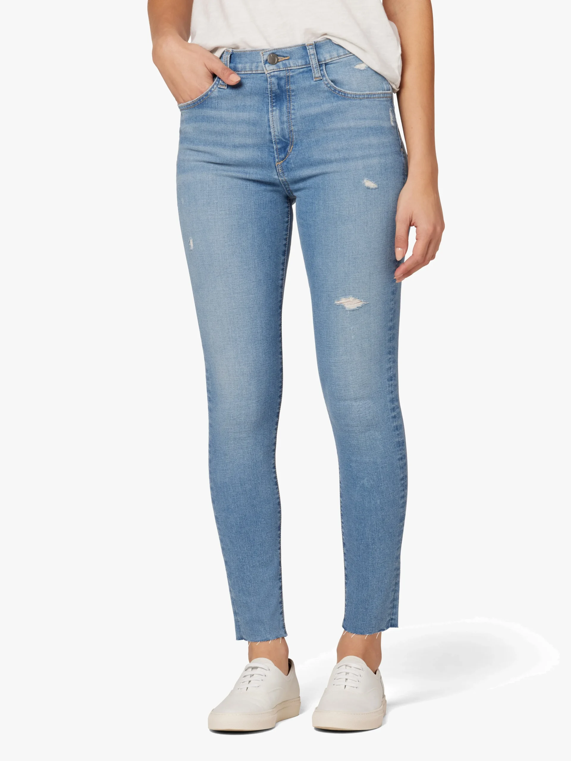 HIGH RISE SKINNY ANKLE W/ DEST AND CUT