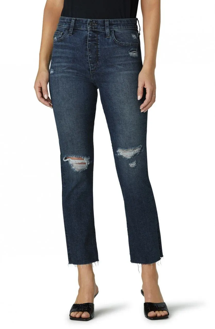 83% algodón, 16% poliéster, 1% elastano–Se adapta a la perfección a todas las formas. Corte de tobillo recto de tiro alto, lavado descolorido, dobladillo cortado. Bragueta con cremallera y cierre de botón.–