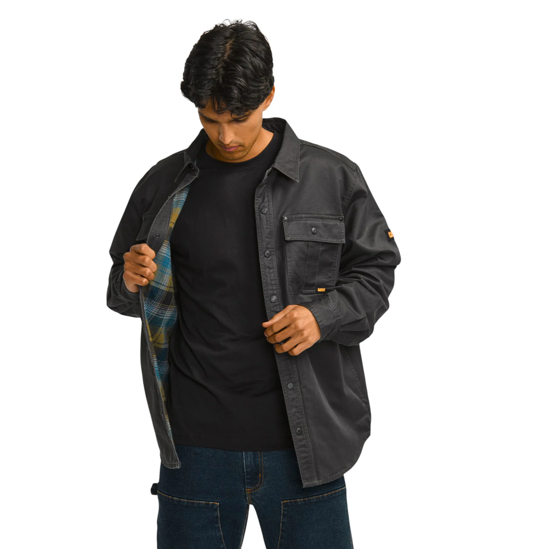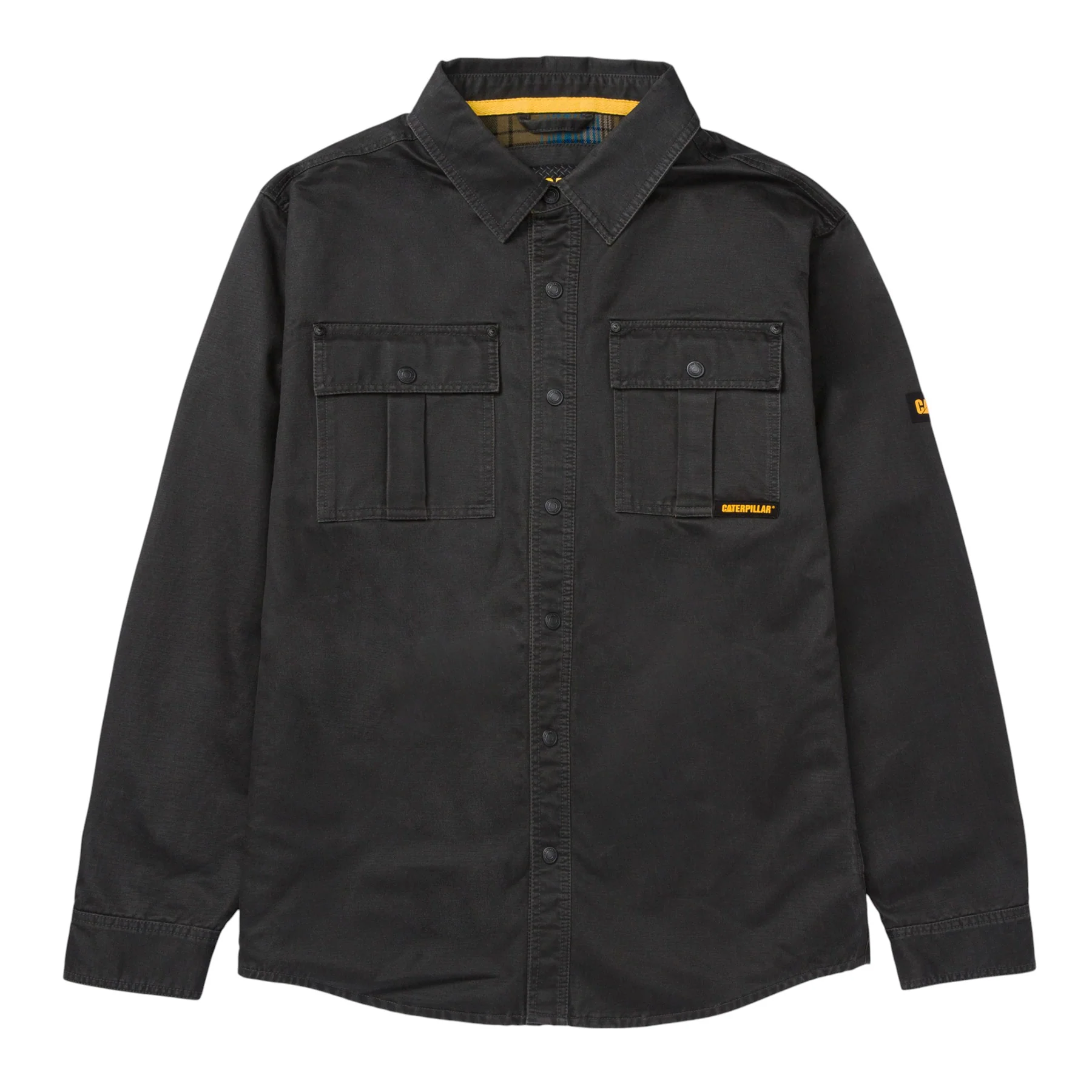Chaqueta de algodón encerado Cat Workwear con forro interior de flannel, que aporta comodidad y abrigo. Incorpora bolsillos funcionales en pecho e inferiores, cierre frontal y puños con broches a presión para un ajuste práctico. Su diseño clásico con pliegue trasero brinda mayor movilidad, ideal para un look versátil y resistente.