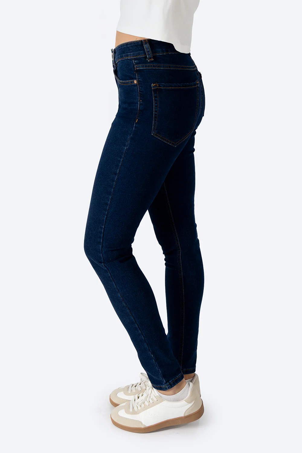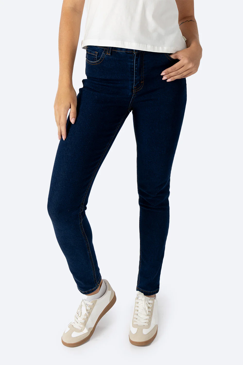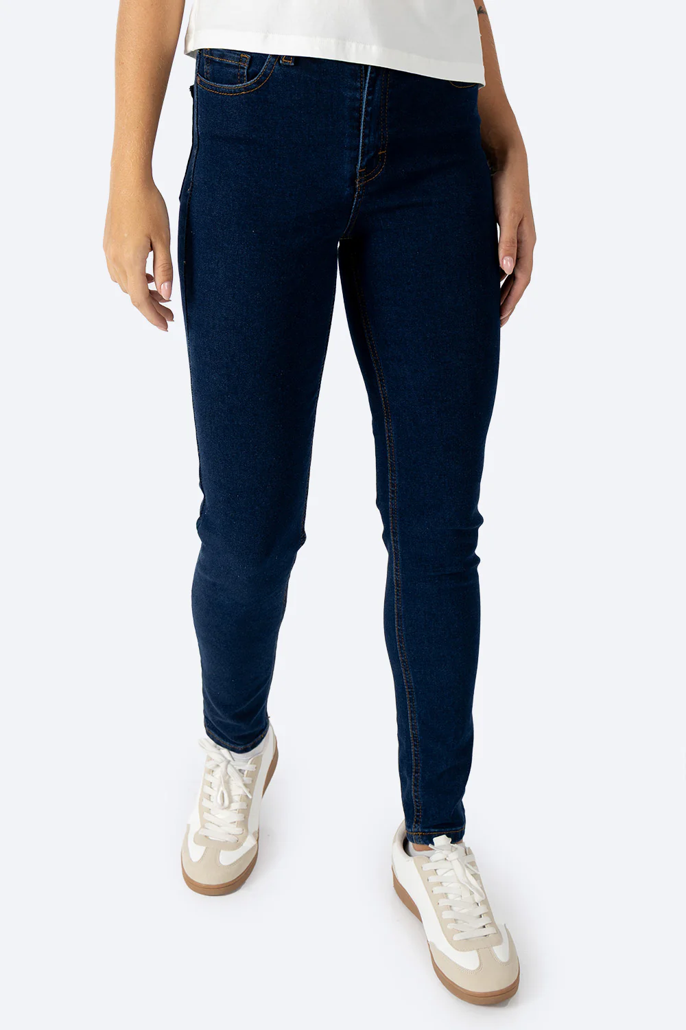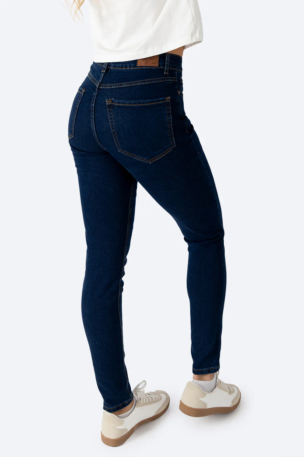 Estos jeans skinny de tiro alto en azul oscuro ofrecen un ajuste ceñido que estiliza la figura y realza la silueta. Su diseño de tiro alto proporciona soporte y comodidad, ideal para un look elegante y moderno. El tono azul oscuro facilita combinaciones versátiles para diversas ocasiones, desde casual hasta semi-formal. Elaborados con materiales que garantizan durabilidad y flexibilidad, son una opción experta para quienes buscan estilo y funcionalidad en un mismo pantalón.