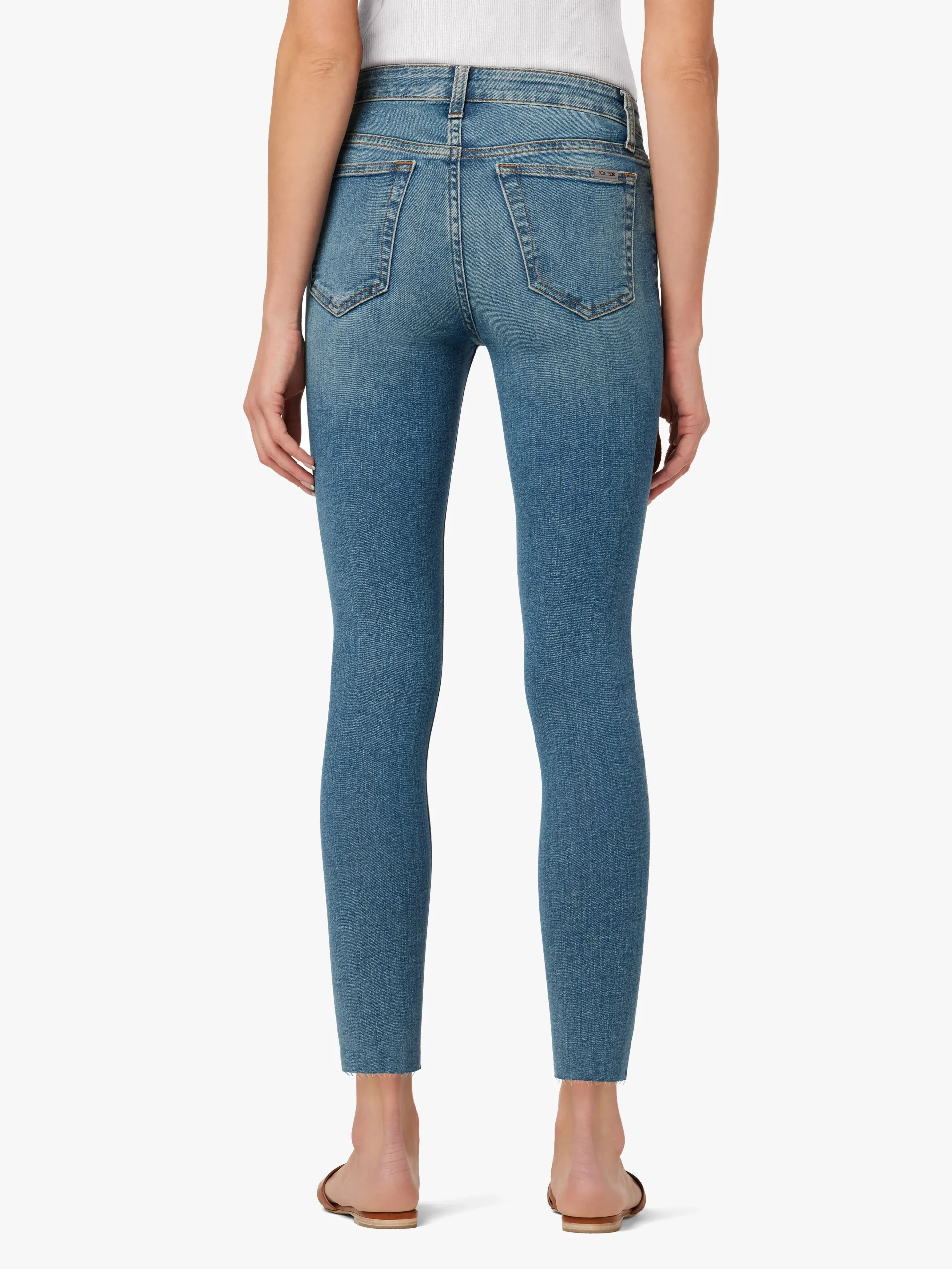 Fibras de importacion. -El jean presenta una mezclilla elástica de lavado medio con una pequeña destrucción de la rodilla y dobladillo sin rematar. –
