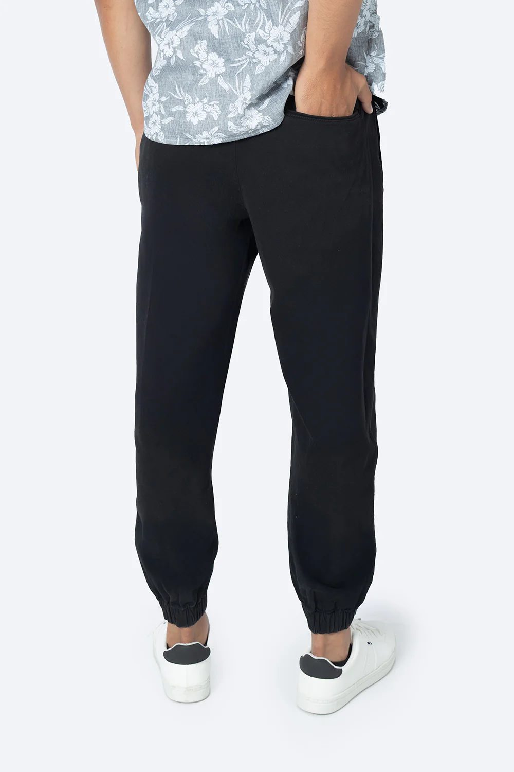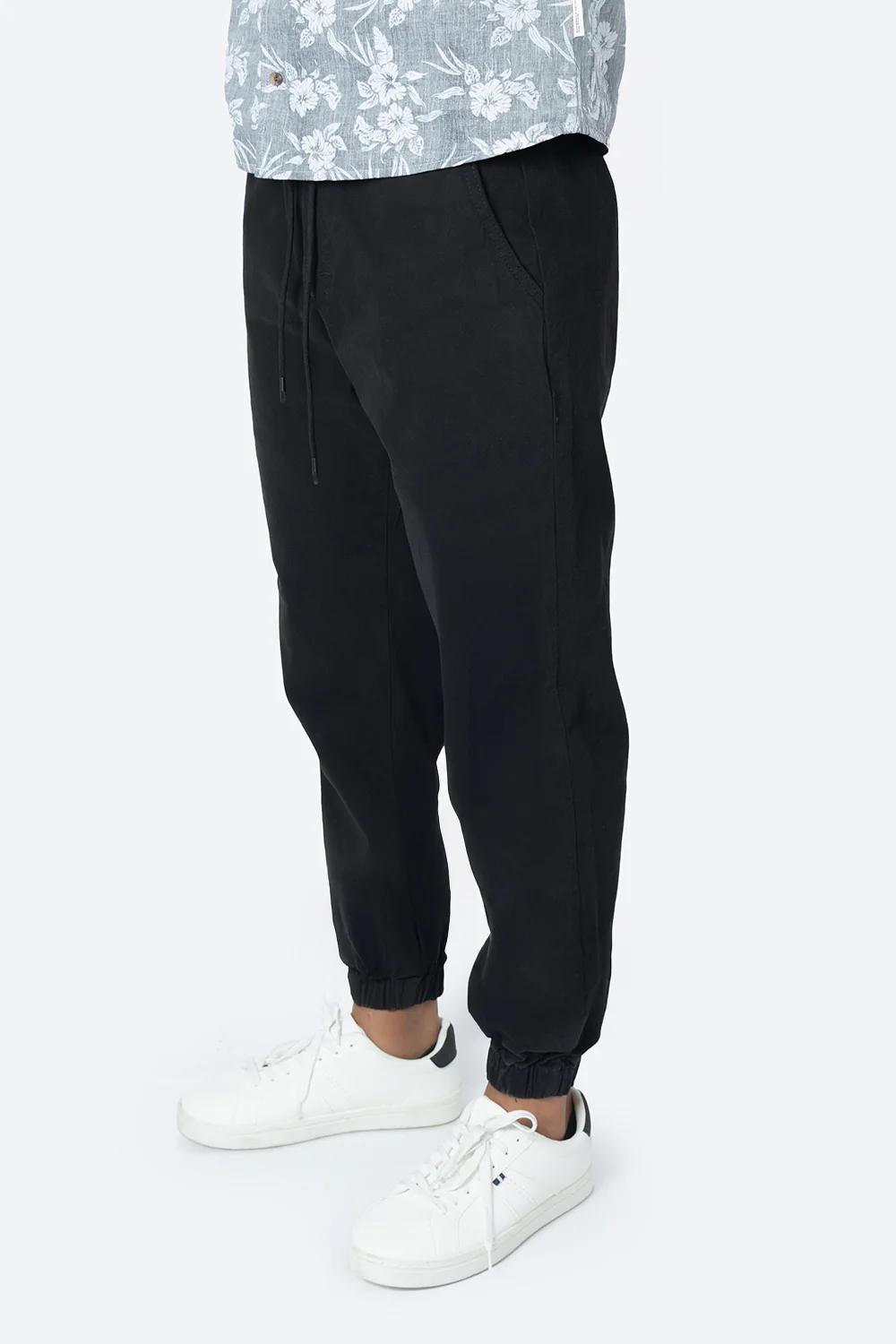 Este jogger en tono negro para hombre, confeccionado con 98% algodón y 2% elastano, ofrece una combinación ideal de comodidad y flexibilidad. Su diseño incluye jareta ajustable para un calce personalizado y prácticos bolsillos delanteros y traseros que facilitan el almacenamiento de objetos personales, perfectos para el día a día o actividades casuales.