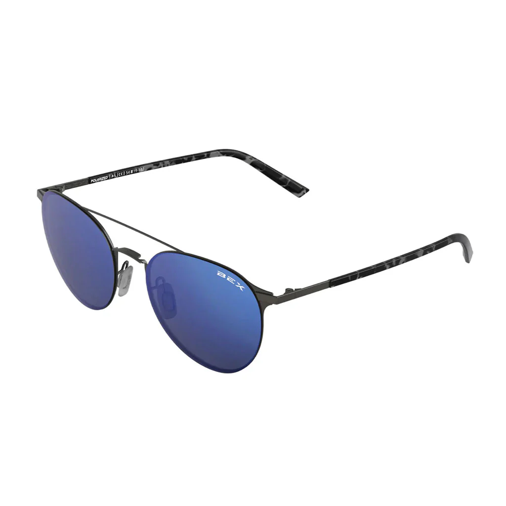 - Gunmetal/Iris (S60GGI) – Armazón de acero inoxidable gris bronce con un acabado satinado, con detalles en carey negro en las patillas.