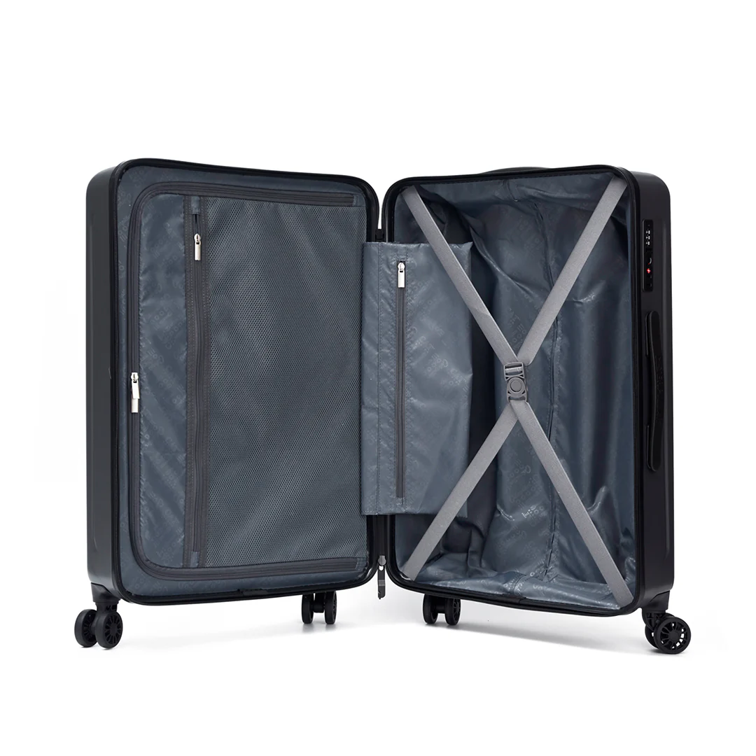 Maleta de 28″ con capacidad de 87 L, fabricada en ABS+PC, con medidas de 51.5 x 77 x 31 cm y peso de 4.6 kg. Dispone de cierre con combinación TSA®, cremalleras dobles de seguridad, asas laterales y superiores para fácil transporte, además de un amplio compartimento principal ideal para guardar un juego completo de ropa.