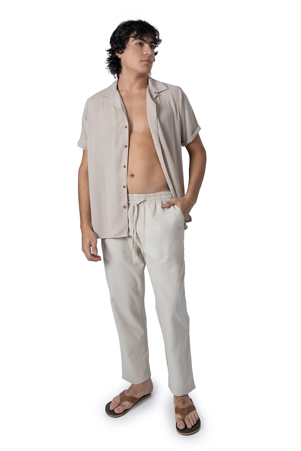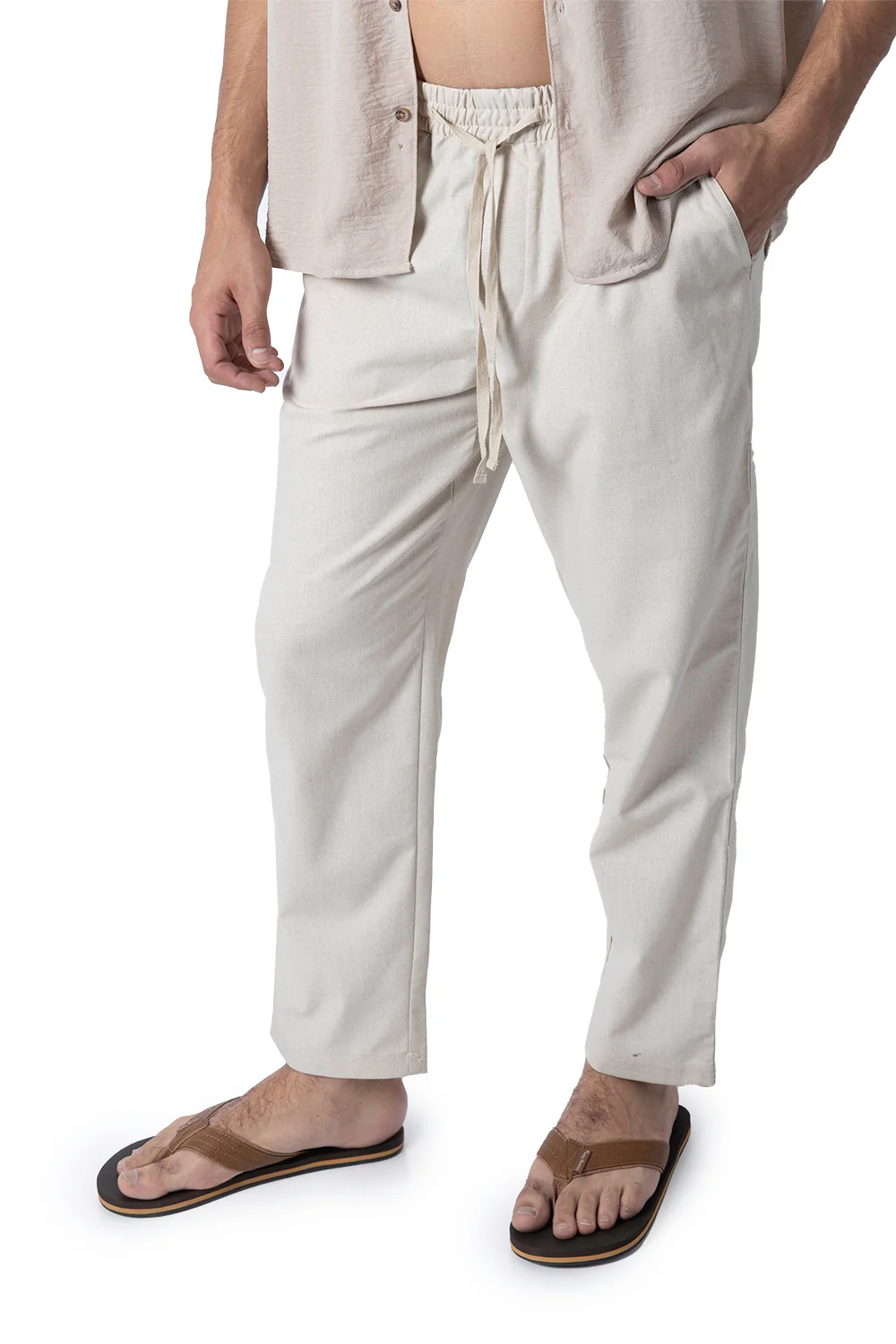 Este pantalón casual en color beige es ideal para un look cómodo y casual. Con su jareta y resorte en la cintura, se adapta a tu cuerpo para mayor comodidad. Además, su corte suelto y suave tela de algodón lo hacen perfecto para cualquier ocasión.