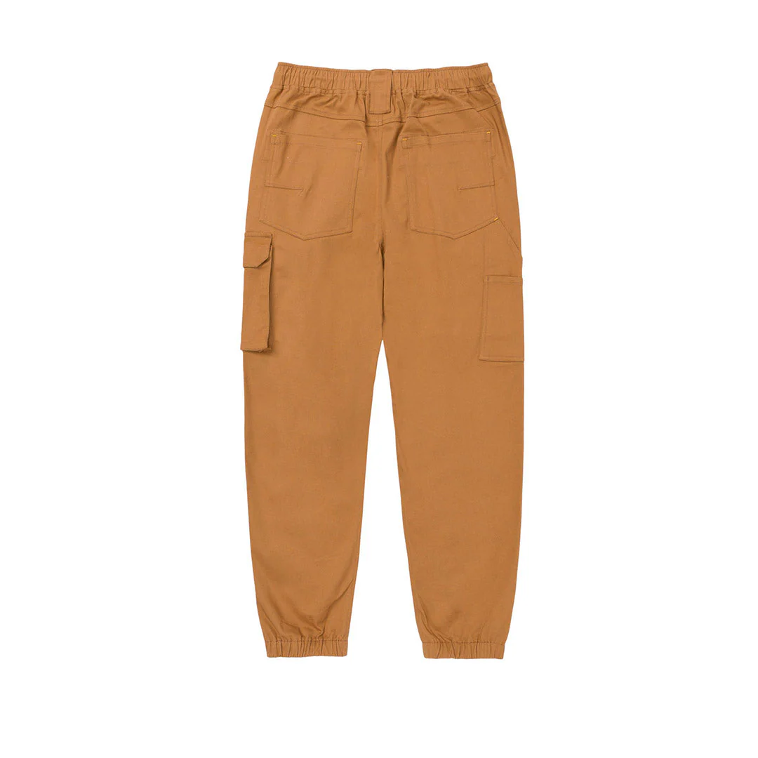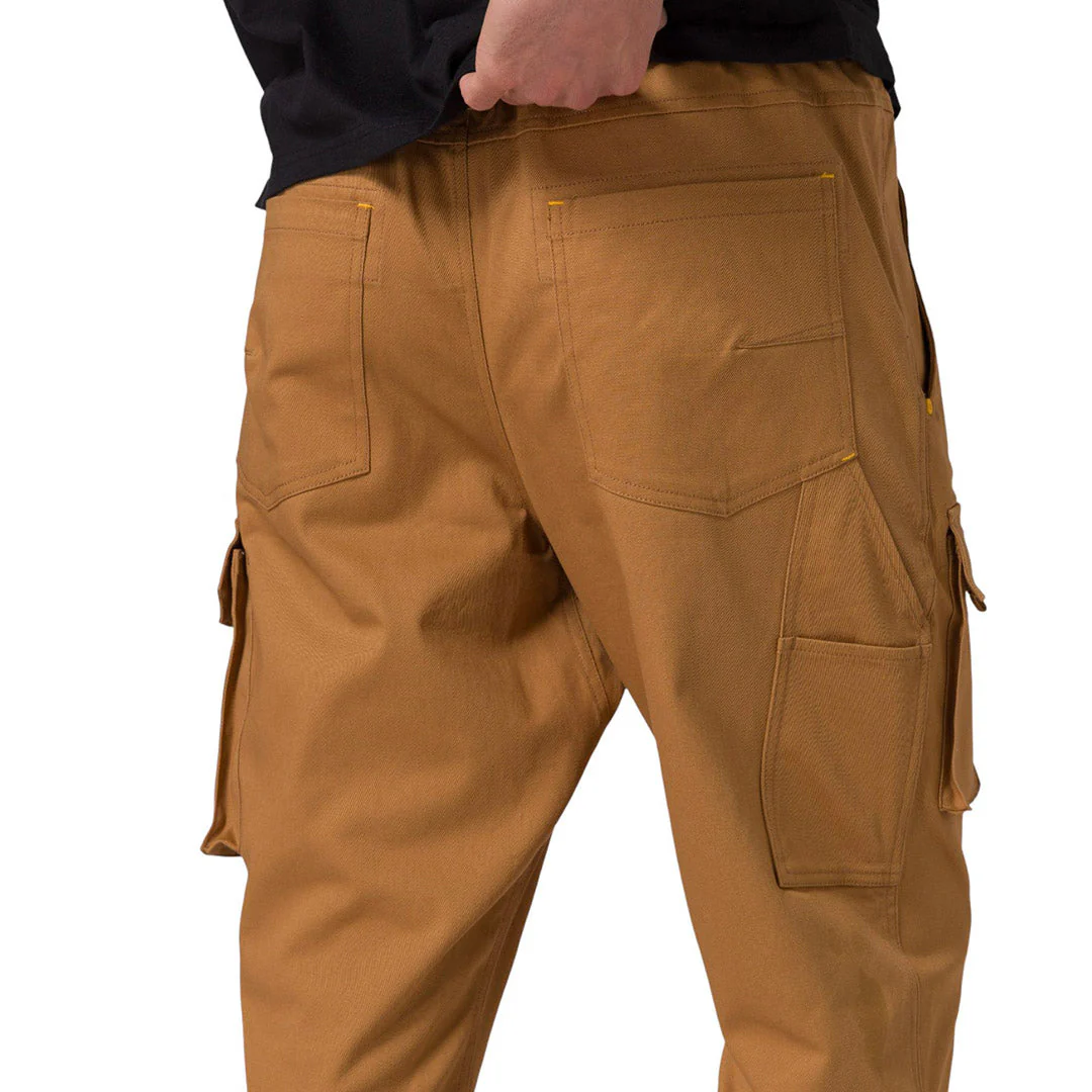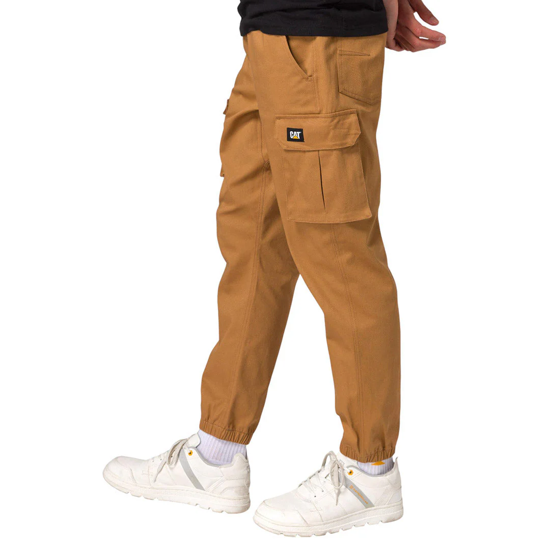 Pantalón chino para hombre, bragueta con cremallera y cierre de botón, bolsillos cargo, cintura elástica, puños elásticos, material con spandex con logotipo tejido con marca de diseño CAT, 97% algodón, 3% spandex, 270GSM.