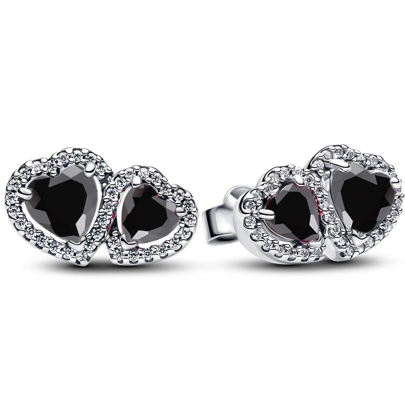 Pendientes Doble Corazón Negro
