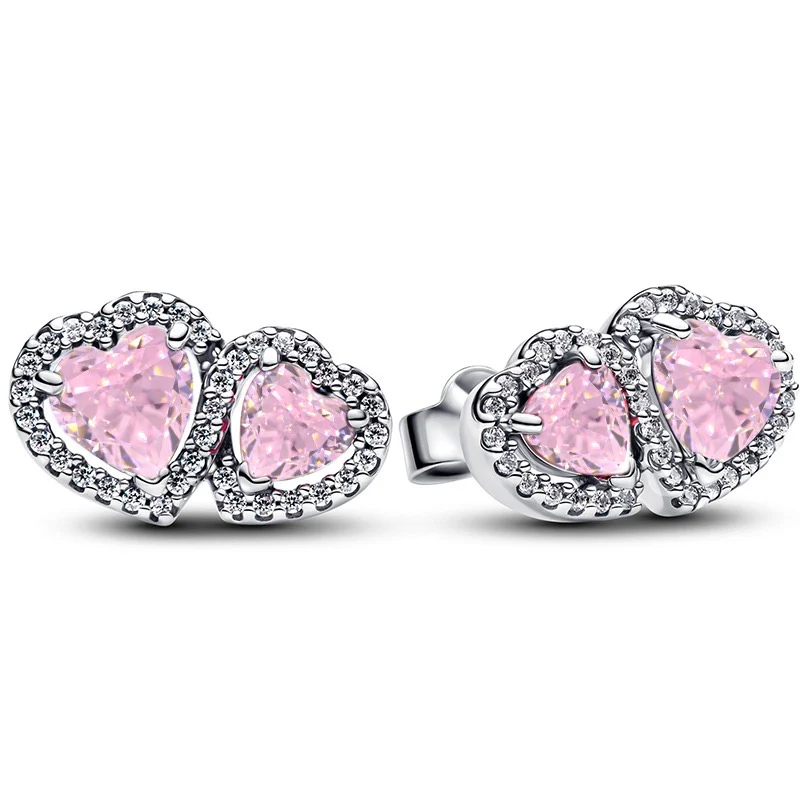 Pendientes Doble Corazón Rosa