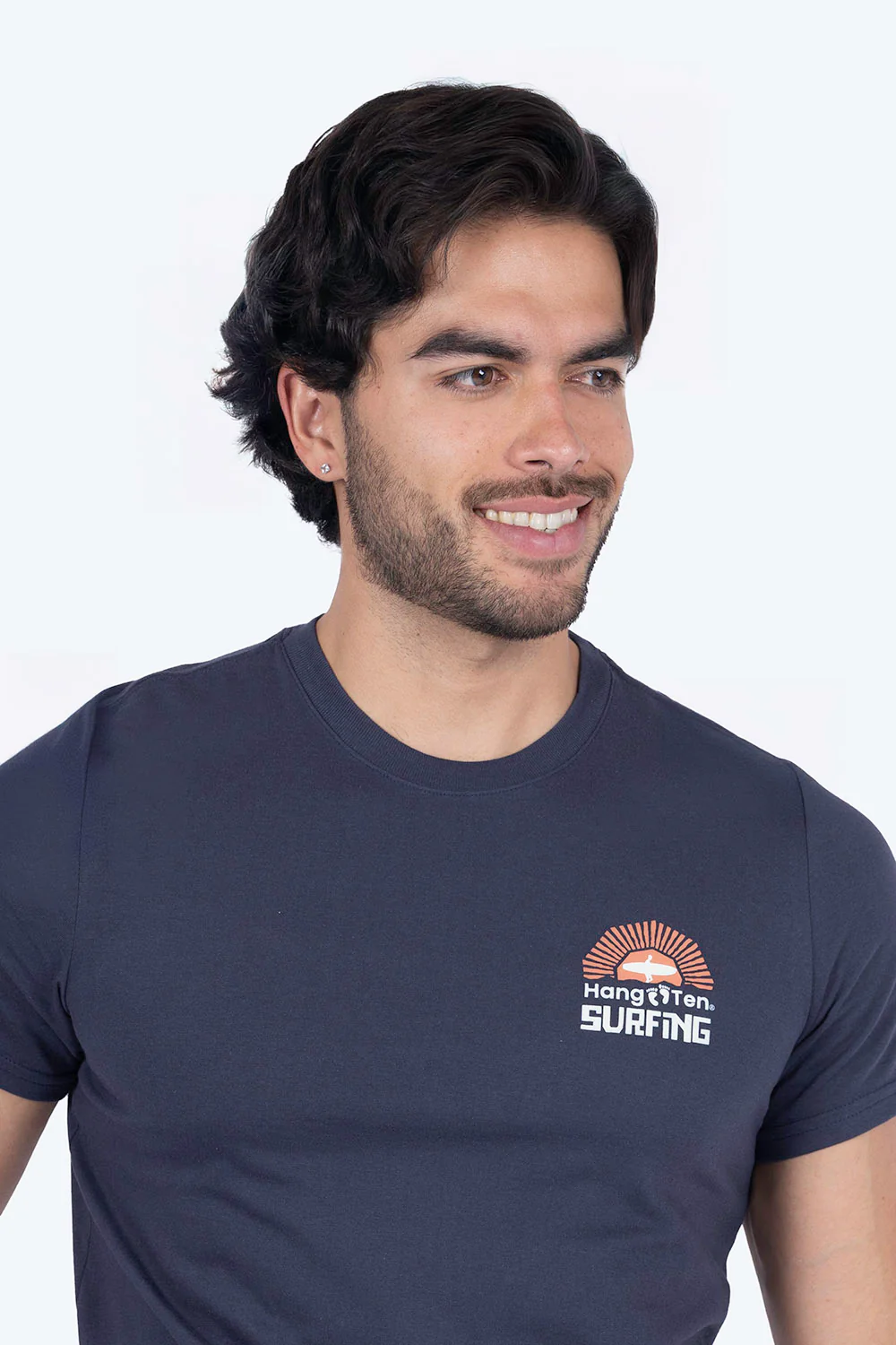 Esta playera de manga corta combina algodón y poliéster en partes iguales, ofreciendo comodidad y durabilidad. Su diseño presenta un cuello redondo clásico, cuenta con un estampado en la espalda aportando un estilo fresco y versátil ideal para cualquier ocasión casual.