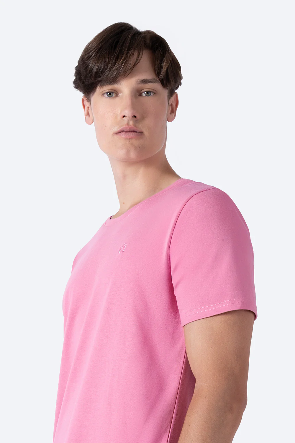 Esta playera básica de hombre en color rosa combina funcionalidad y comodidad con su tejido compuesto por 60% algodón y 40% poliéster. Su diseño de manga corta y cuello redondo ofrece un ajuste clásico y versátil, ideal para el uso diario. La mezcla de materiales proporciona una prenda suave, resistente y fácil de cuidar, perfecta para quienes buscan una opción duradera sin sacrificar comodidad ni estilo.
