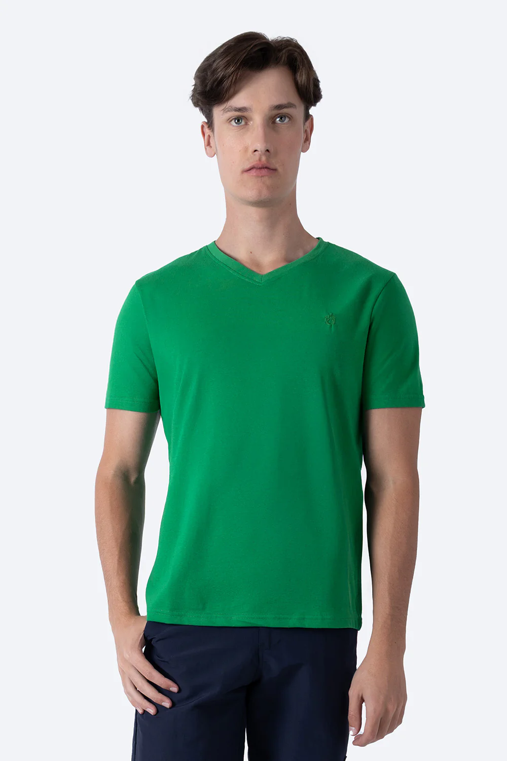 Esta playera básica de hombre en color verde medio combina funcionalidad y comodidad con su tejido compuesto por 60% algodón y 40% poliéster. Su diseño de manga corta y cuello V ofrece un ajuste clásico y versátil, ideal para el uso diario. La mezcla de materiales proporciona una prenda suave, resistente y fácil de cuidar, perfecta para quienes buscan una opción duradera sin sacrificar comodidad ni estilo.