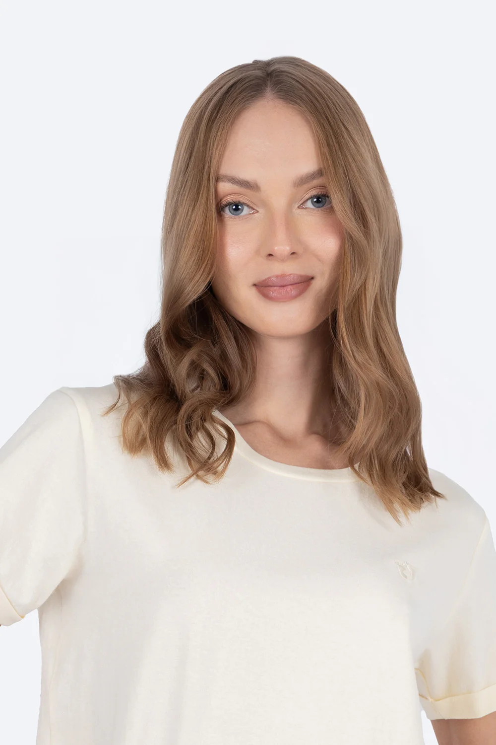 La playera básica boxy de color beige es ideal para un look casual y cómodo. Con su corte boxy y mangas cortas, ofrece un ajuste moderno y fresco. Perfecta para cualquier ocasión, esta playera es una pieza imprescindible en tu guardarropa.